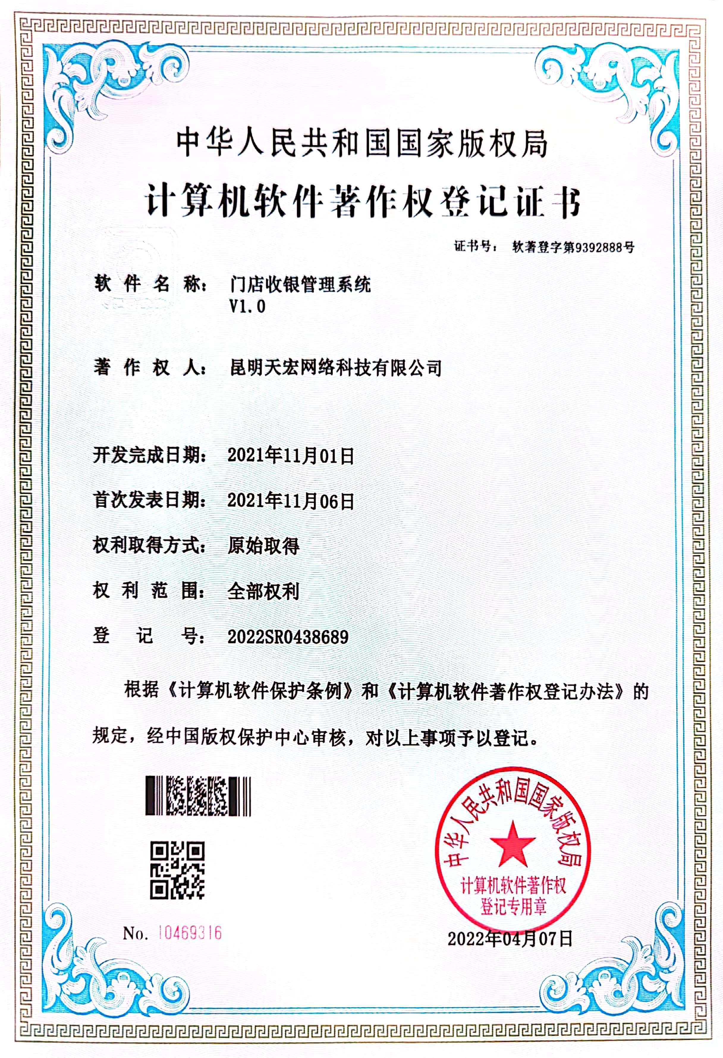 天宏網絡通過不斷的研發(fā)創(chuàng)新,現擁有50多項計算機軟著證書,包括多商家點餐系統(tǒng)、門店收銀管理系統(tǒng)、通用OA協(xié)同辦公管理系統(tǒng)、智慧商圈運營管理平臺、天宏健康智慧+系統(tǒng)、同城O2O管理系統(tǒng)等。